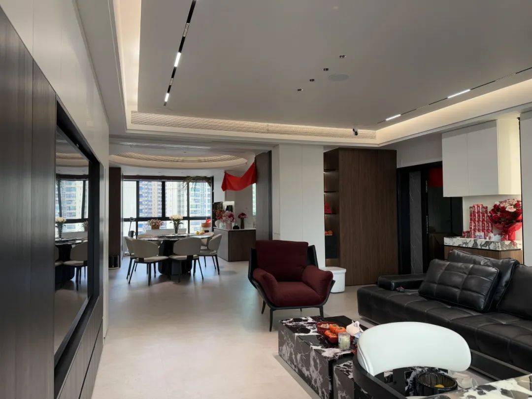 全屋采用恒福瓷砖维罗纳系列 F98GL801 通铺,其杏色如杏仁糖般暖润。瓷砖上细闪纹理若繁星闪烁,丰富空间色彩层次。