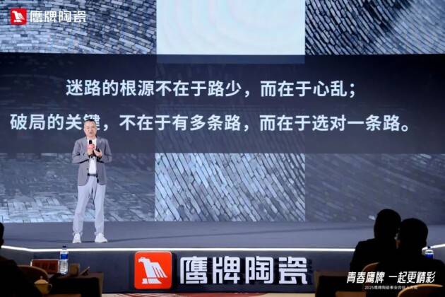 2025是鹰牌第二个50年的启航之年,也是崭新的起点。陈总裁分析:根据第一季度的行业数据来看,今年依然是“寒冷”的一年,我们要继续坚持“陶瓷+大家居”双轨并行的战略战略方针,从品牌、产品、渠道、中心仓、供应链等方面挖掘品牌增量。