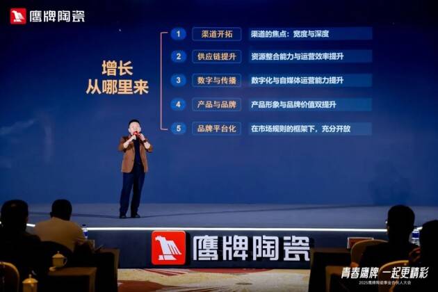 在系统梳理2024年发展短板后,陈总正式发布2025年鹰牌陶瓷战略规划,将围绕三大方向深化布局:
