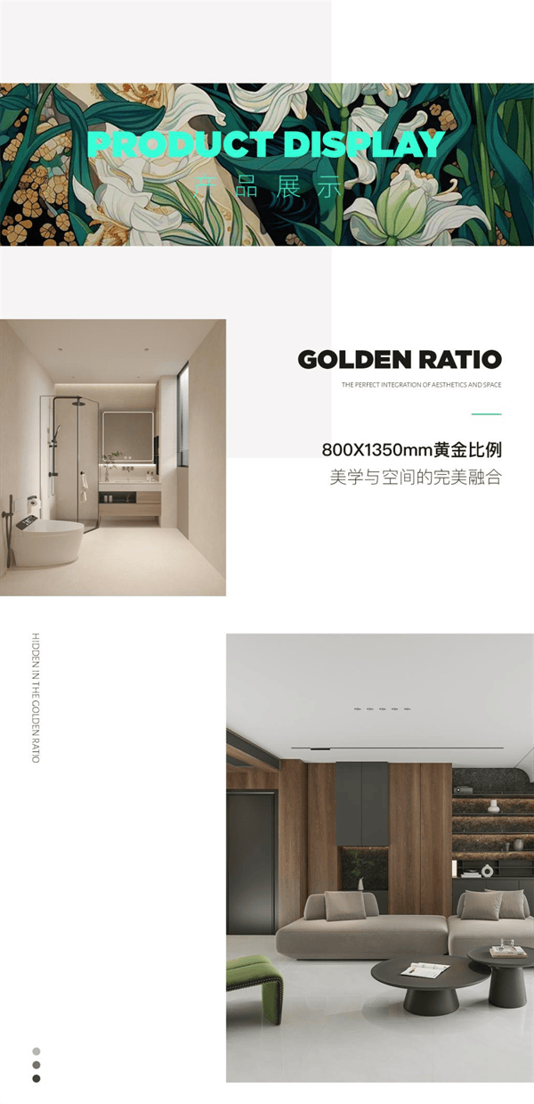 从达芬奇到蒙德里安,人们认为「黄金分割」比例,在多个世纪以来一直在指导着这些艺术家,在建筑中显示了巨大的作用推动人类在它的指导下去认识世界和改造世界,古希腊时代雅典的巴特农神庙就是按照黄金比例建造出了神殿,有研究人员测出大理石柱廊高恰好占整个神殿高度的0.618比例,相较于常见的瓷砖规格,800X1350mm大小适中,空间整体感强视觉舒适,特别是连纹铺贴时纹理纵深感更强,能带来更加自然大气的效果。