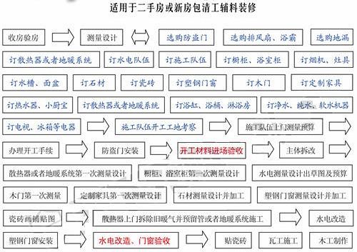 为了让网友得到清晰的装修脉络和步骤,绘制了一个实用的“家庭装修步骤图表”。这份“家庭装修步骤图表”是目前国内最详实明确的装修步骤图表(特指二手房或新房包清工辅料装修),有兴趣的同学可以下载打印,按步骤施工进行。