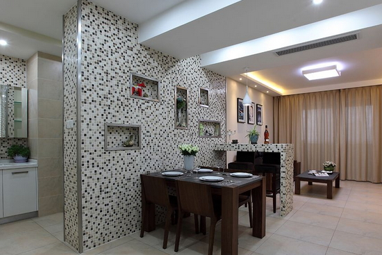 这个家居装修本身就是以马赛克为主,而采用马赛克来装饰餐厅的背景墙,使得整个空间充满了时尚感。
