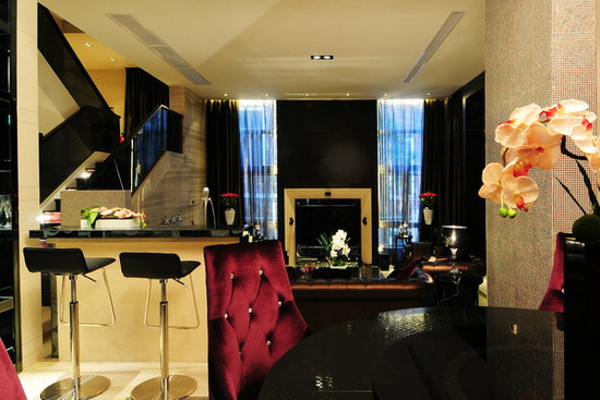 用马赛克拼出一副美丽的画作,并以此来作为餐厅的背景墙,这样的一个设计效果,在灯光的照射下,显得份外的精致。