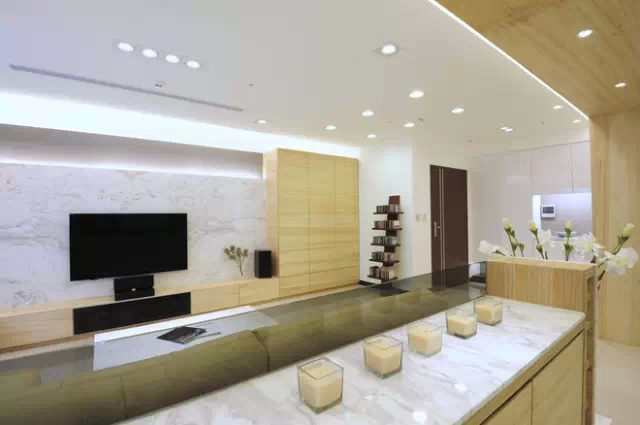木质材料经济实惠,而且近年来制作电视背景墙也越来越普遍,用木质材料制作客厅电视背景墙的有点是不仅花色品种繁多,价格也是经济实惠,能完美的搭配室内装修风格,而且清洁保养也是非常简单方便。