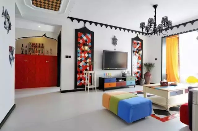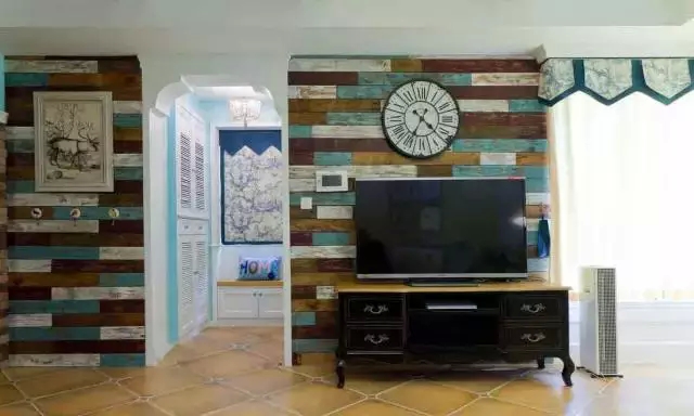 混搭并不是风格上的随意拼凑,比如地中海的风格配个田园或者工业风,不伦不类,哪个都想追结果那个也追不上。不只是单一的使用一种元素,可以用壁纸,也可以用艺术喷绘,甚至还可以用木板,使得各种元素相互辉映,相得益彰。
