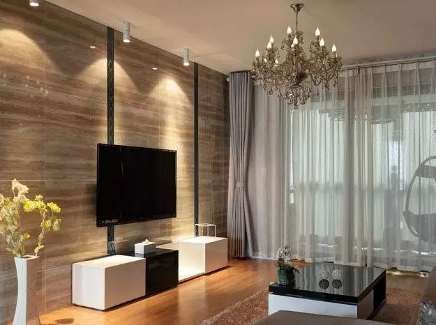 不建议选择太艳的,或许第一眼你会很喜欢,但这种时间久了不耐看。即便是设计师在设计电视背景墙的时候,也会着重考虑和客厅风格的匹配程度。例如若为中式风格的客厅,那背景墙便可以采用字画等带有中国传统文化的元素,还可以把古朴的文化石、大理石等很有质感的主材使用进去,效果会很不错。