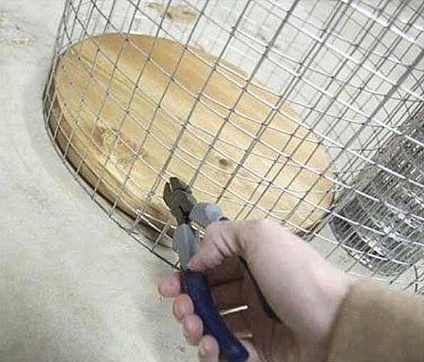 step 1:装网筐。把铁丝网绕木板一圈,留出2㎝左右的余留,用尖嘴钳剪断