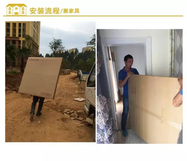 我们都知道家具的安装其中一个比较重要的环节就是搬运的过程,在搬移家具时不能将家具硬拖猛拉,应轻抬轻放,是很考验师傅耐心的,搬上去之后还要分别放在对应的房间