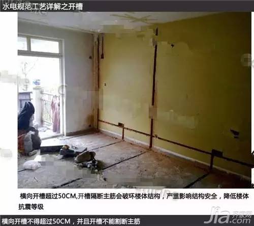 4.禁止在墙体开长横槽走电管。承重墙易破坏结构,轻体墙长距离断筋照样会造成后患。 5.无特殊情况,电线管不宜走石膏线内,易造成死弯,死线。