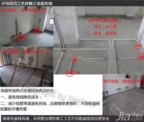 9.卫生间潮湿区域地面不宜走电管;如避免不了,地面必需整管,不可留管接头。