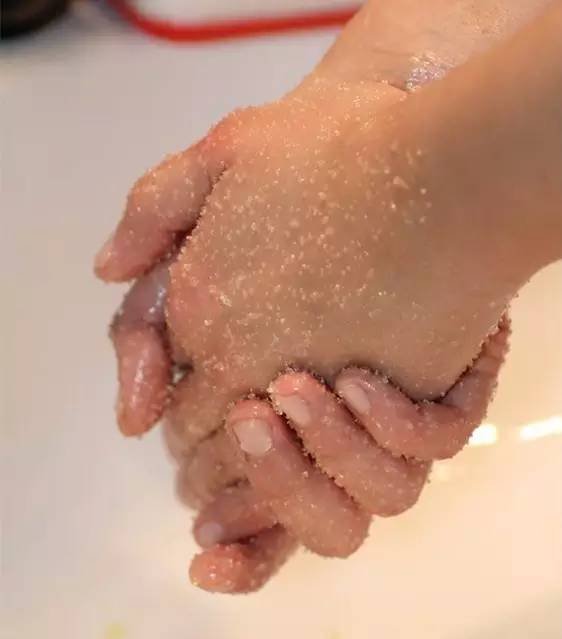 等5分钟后,再用双手轻轻揉搓,用水冲洗,污渍很快就消失了。