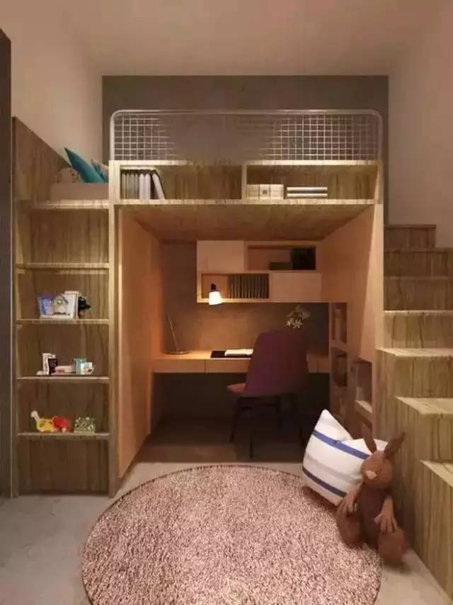 这样的收纳隐藏的够深啊,将整个床板掀起就是分成很多格的收纳空间,厚点的被子之类的东西就可以藏在这里。不仅增加了功能,同时还节省了空间。