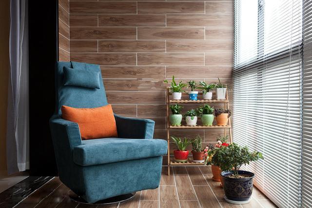 这是阳台,放了一个椅子在里面,还种了很多花草,生活简直是太惬意了,坐在这里能休息还能观景。