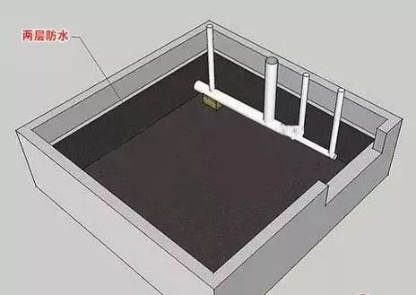 做两遍防水涂料,这两遍防水一定要连墙体一起做,墙体做的高度要高出沉箱上沿 40 厘米以上。保证上层渗的水不会往周边扩,只能往地漏排出。