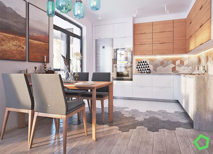 厨房的墙砖和地面的六角砖