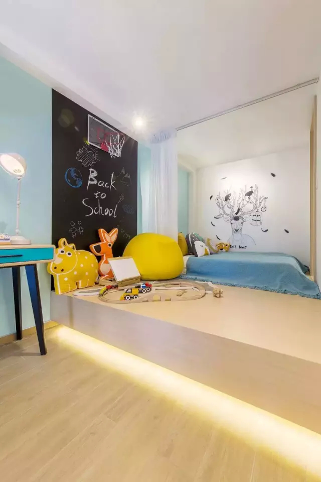 如果担心和家里的风格不搭,也可以跟着风格进行改变,谁说榻榻米只能是日式的,好用就行了~