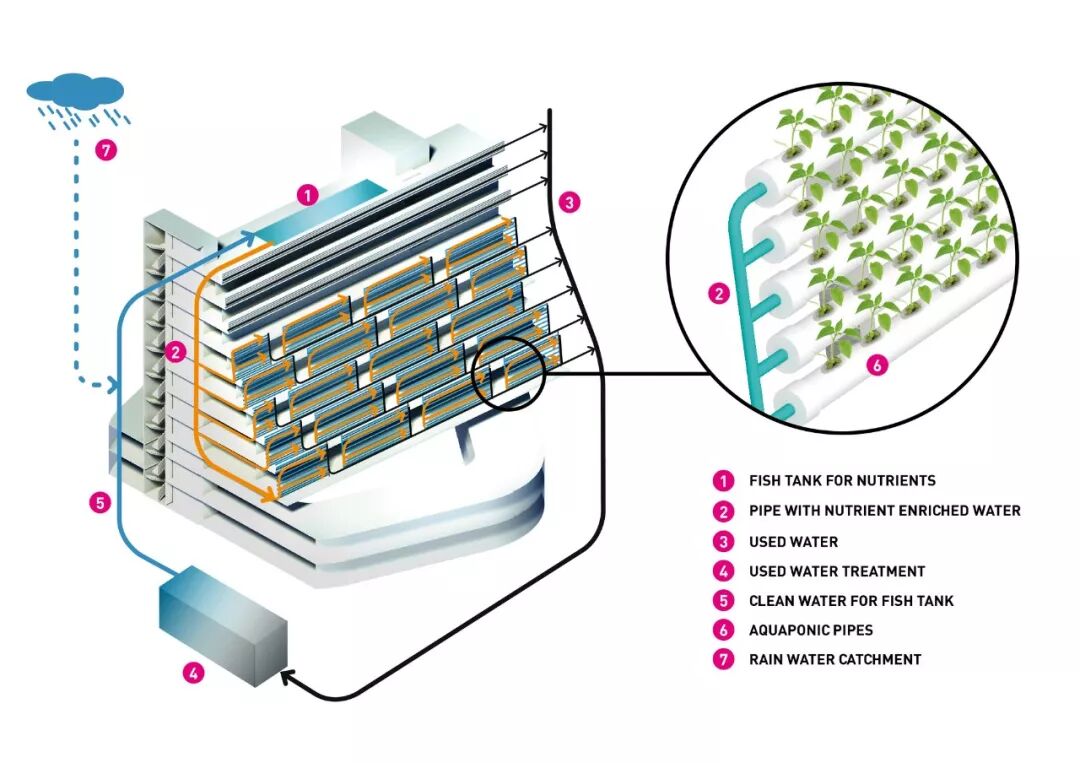 住宅区与农业相结合的模式在高效的雨水处理系统和能源系统的协助下,其可持续性和高效能性进一步增强。