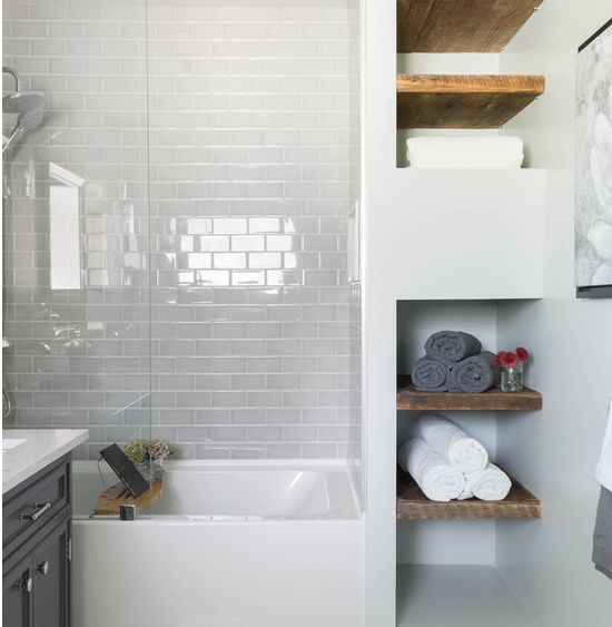 最推荐的是在墙上做一个壁龛,非常节省空间的一种收纳方法,小卫生间的福音。