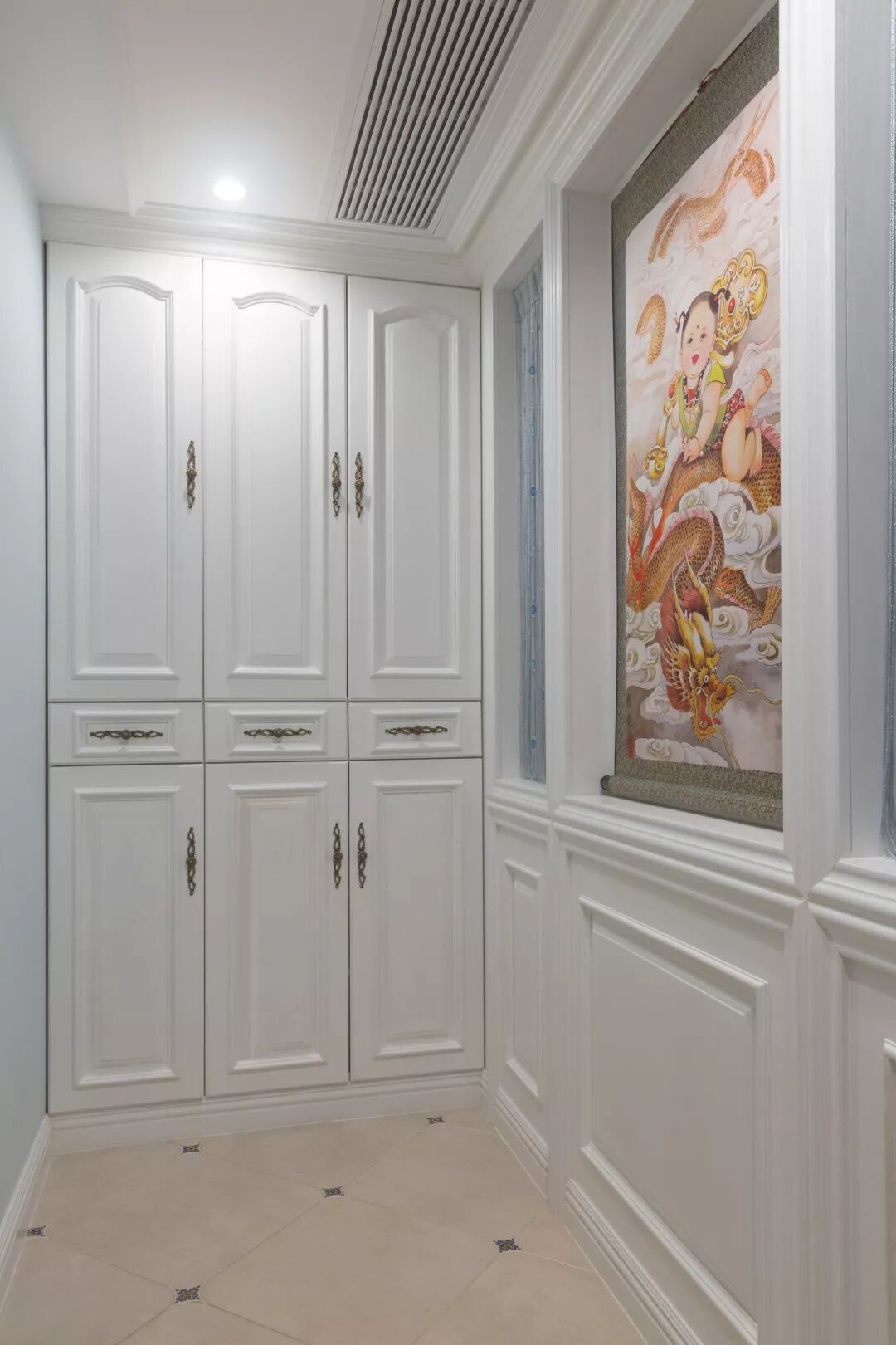 ▲衣帽间以象牙白的柜体与墙身,整个空间显得格外的精致雅致