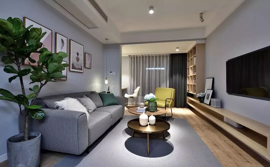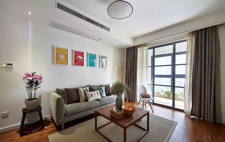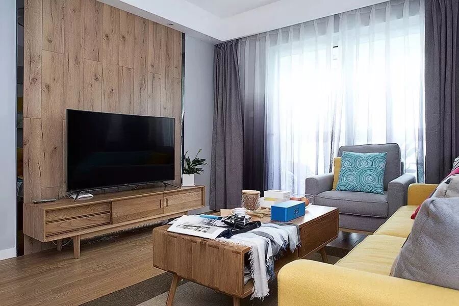 宜家风格的客厅,通常是搭配灰色、米黄、米白的窗帘,往往显得很现代很年轻的视觉,非常的棒。