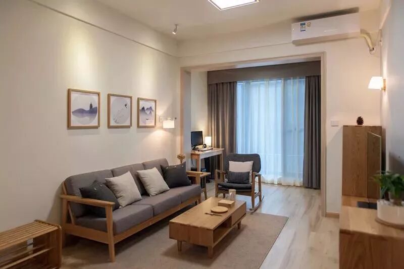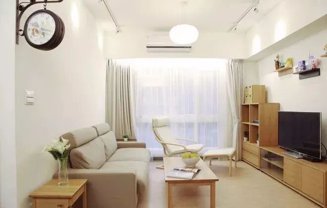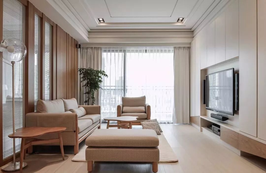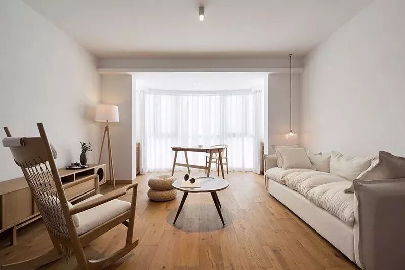 日式风格的客厅家具通常是原木跟布艺结合为主,所以窗帘方面通常也是浅色的