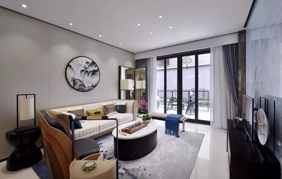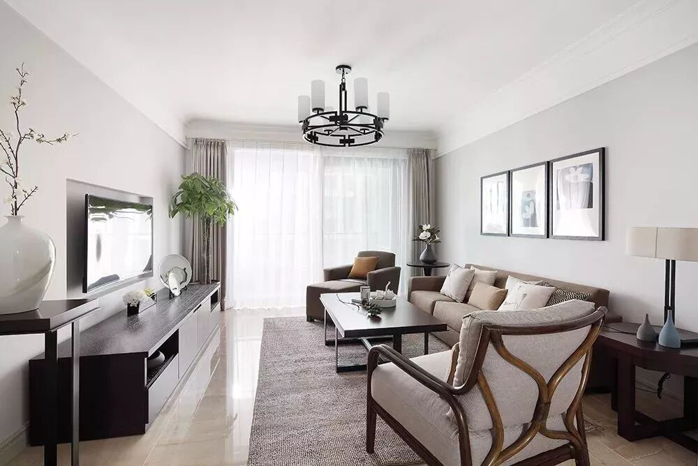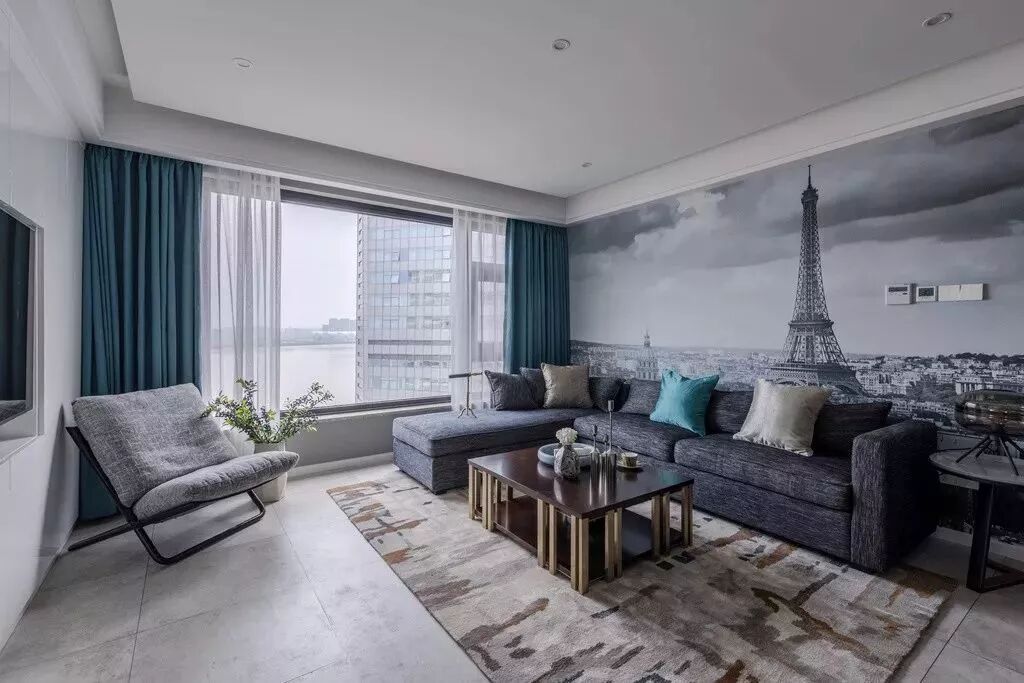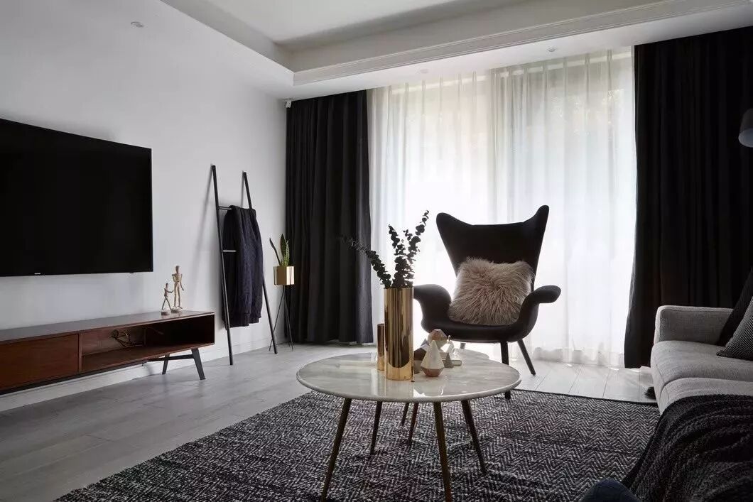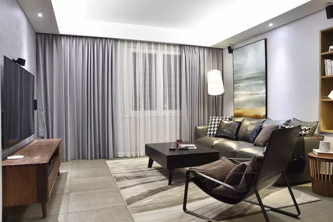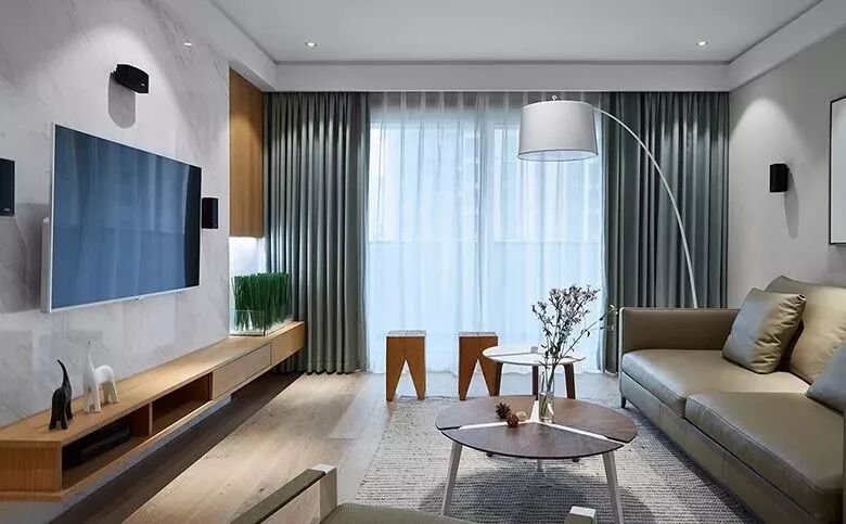 现代简约风格的客厅窗帘,通常都是纯色的为主,搭配一层纱帘,效果就相当不错,具体窗帘的颜色,也是根据整体搭配而定。