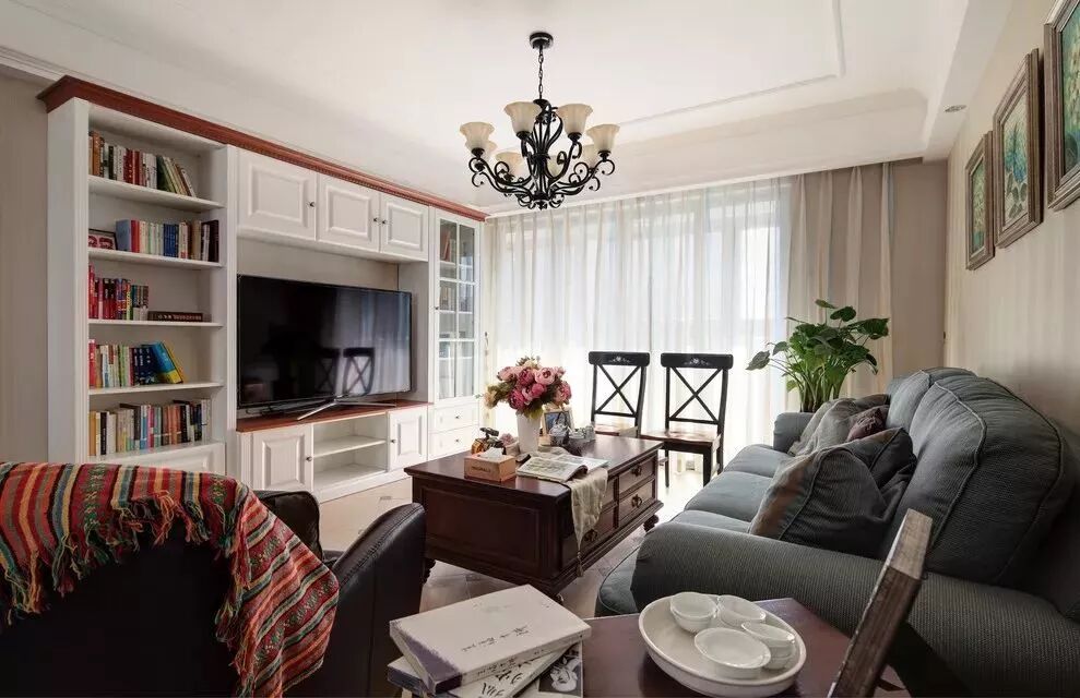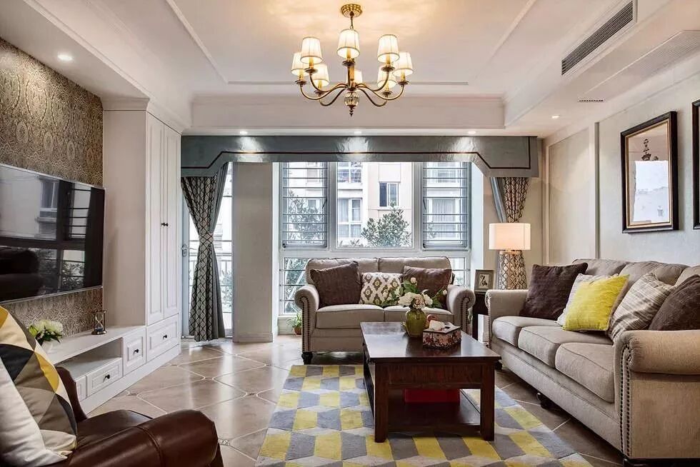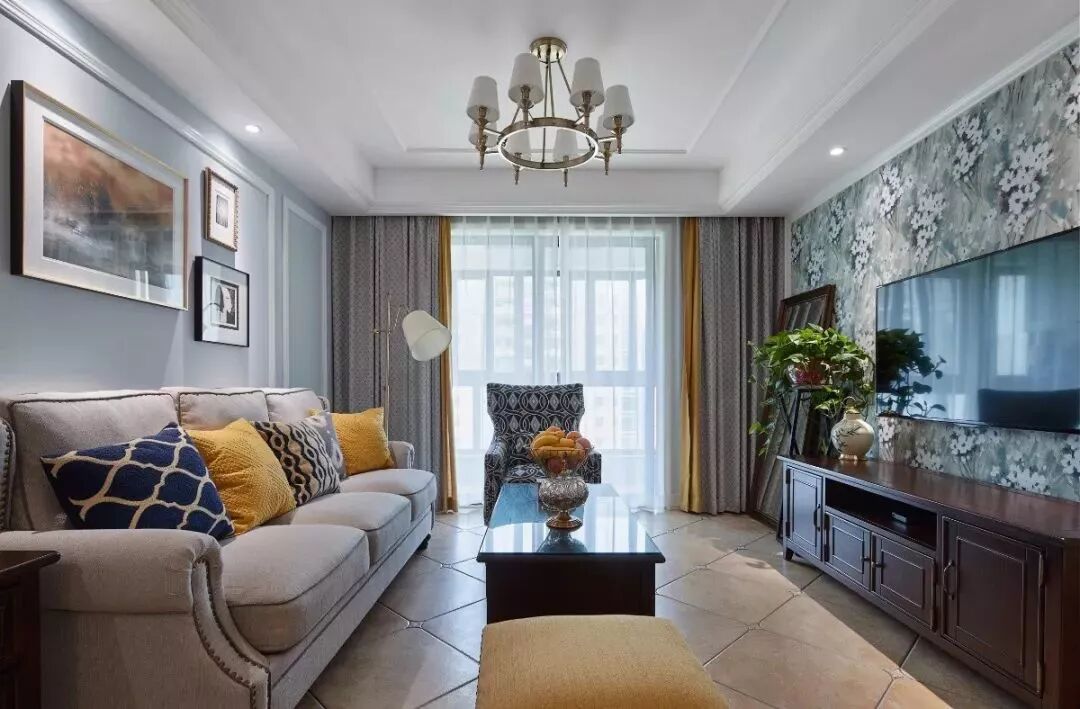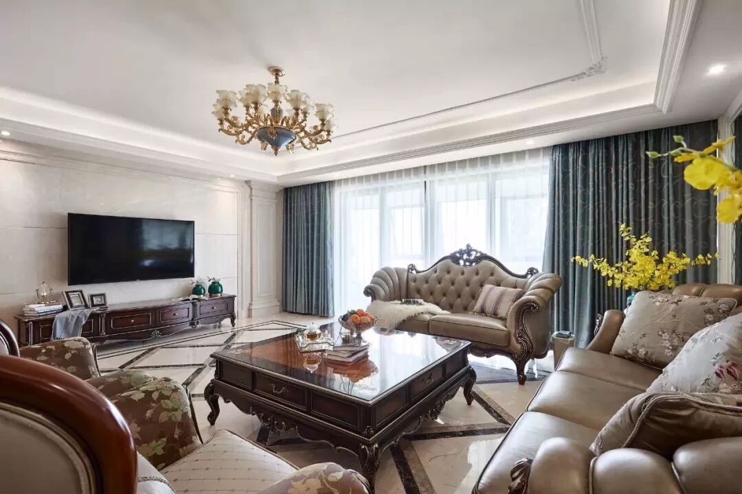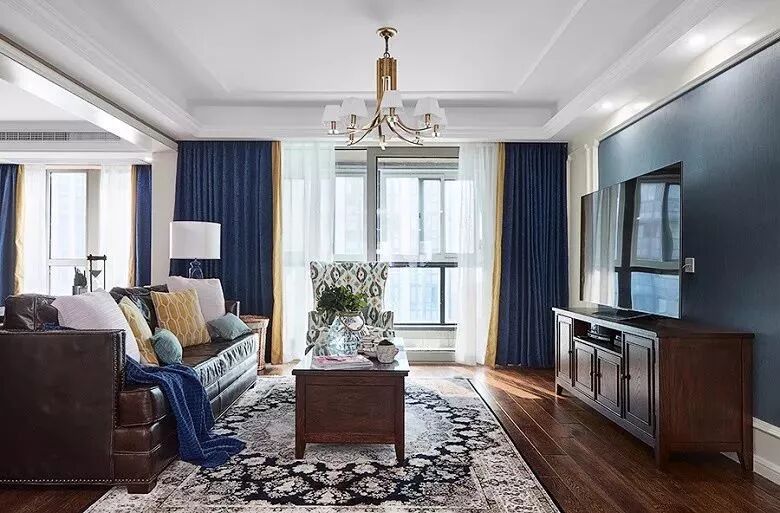 美式风格的客厅窗帘,一般是深色为主,也可以选择像图13这样带有花纹的窗帘,效果很是优雅大气。