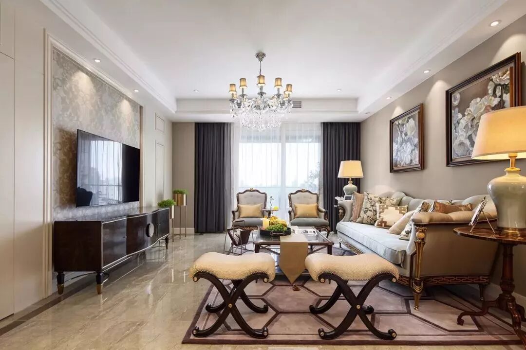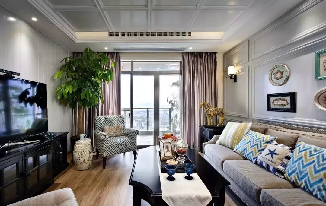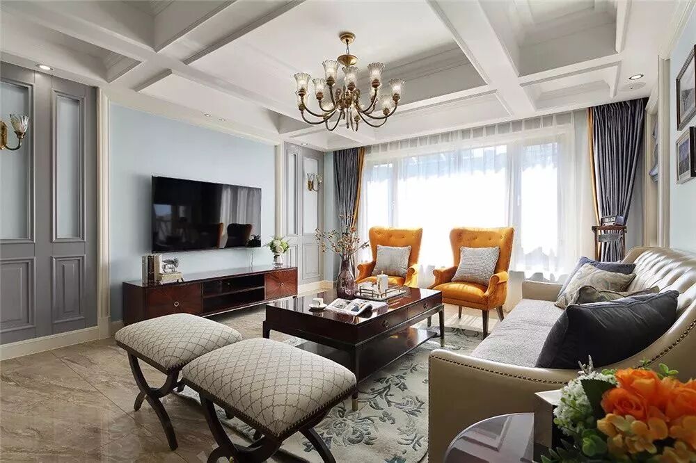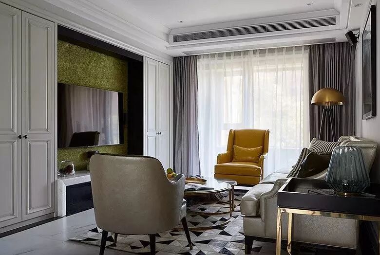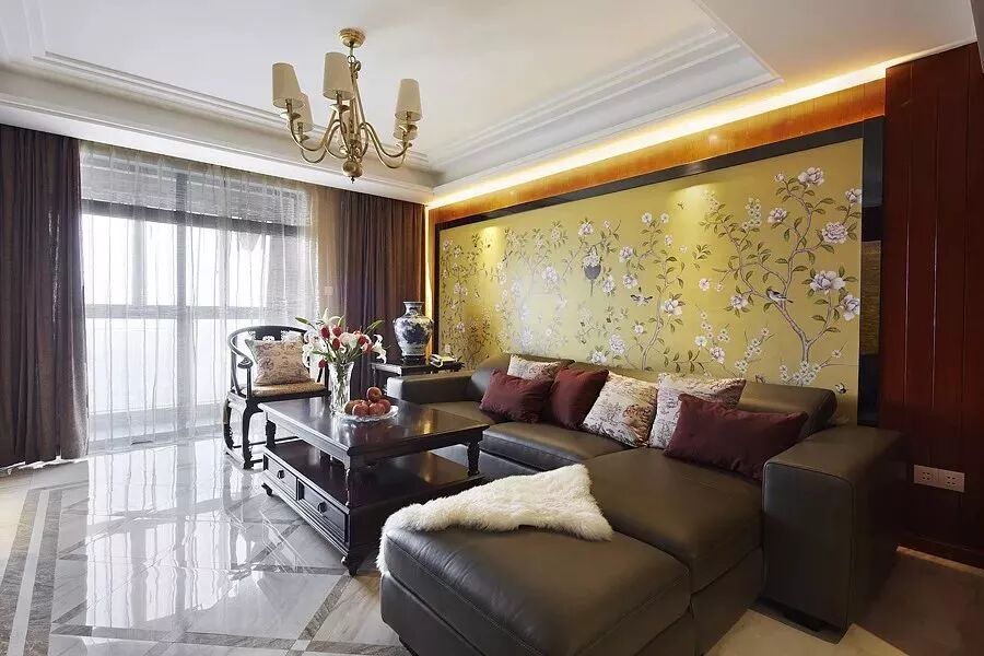 美式风格的客厅窗帘,一般是深色为主,也可以选择像图13这样带有花纹的窗帘,效果很是优雅大气。