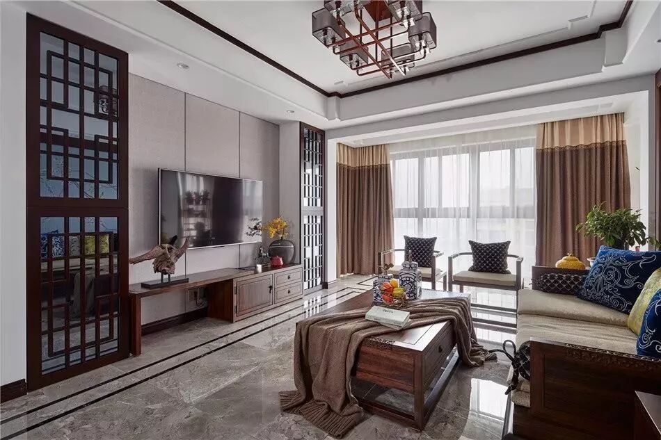 在于现代人的中式风格中,窗帘的深浅通常是随着家具的色调搭配的,整个空间看起来是什么格调,窗帘就选择什么样的格调,这样一般都不会错。