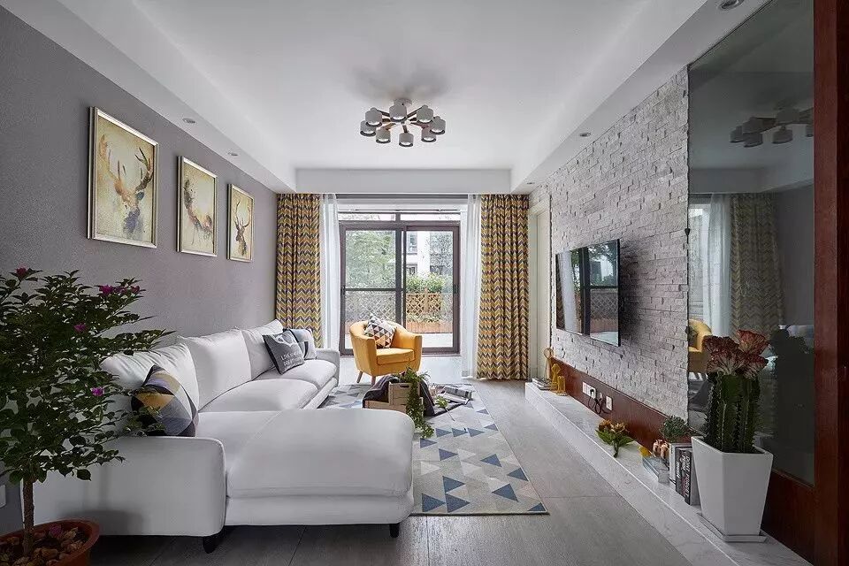 北欧风格的客厅窗帘,往往是以灰白调或则较为清新活力的色调窗帘搭配为主,结合上舒适精致的空间,会显得很闲适大方。