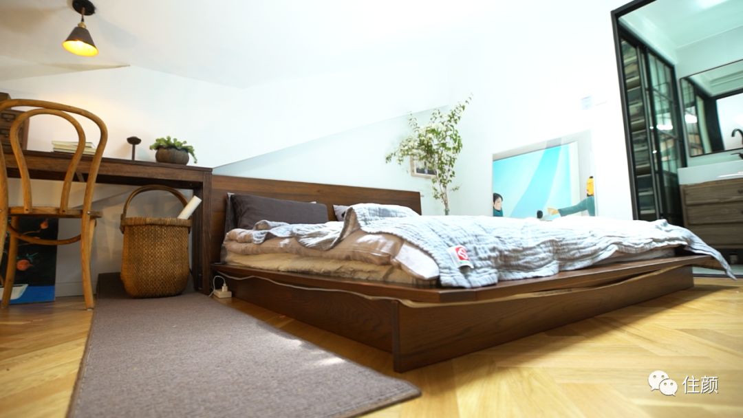 之所以把主卧放在三层,是因为小米的阁楼梦。斜顶阁楼,绝对是每个少女都曾经向往的存在,打开推拉式的屋顶天窗,和最爱的人一起看星星,无比幸福。