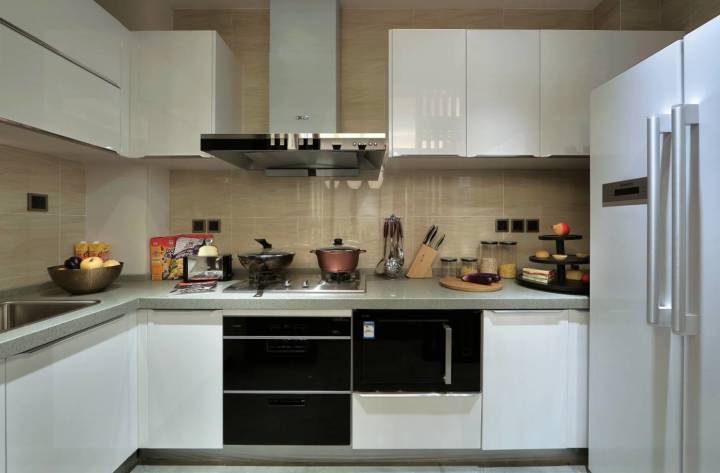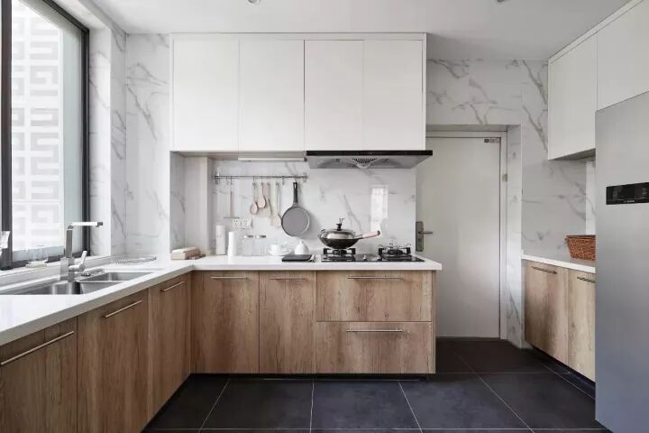 现代简约风的厨房,橱柜一般可以有亮白色、木色等简约舒适的面板,整体效果相对比较现代大方;