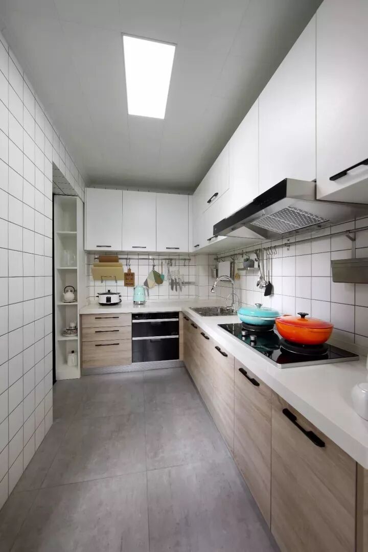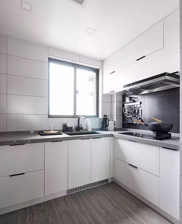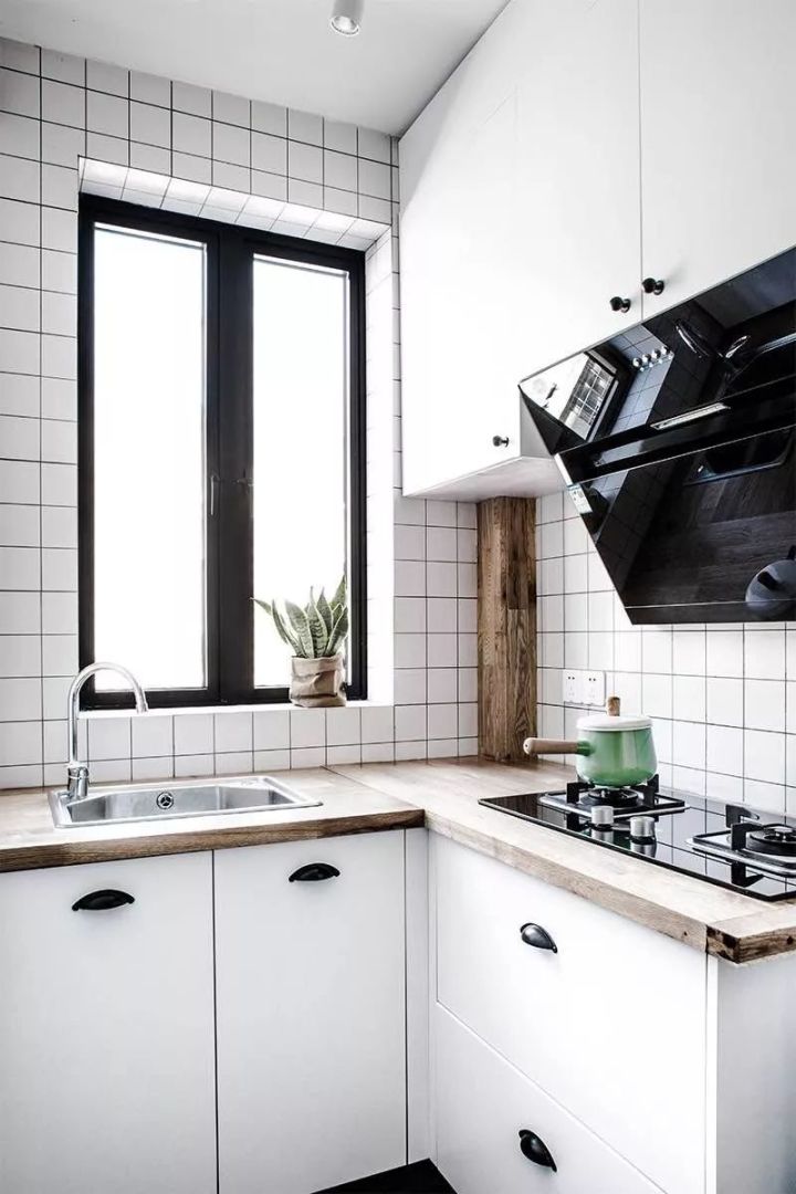 作为小网红北欧风,凭着年轻时尚又文艺的格调,捕获了不少年轻人的心灵;而这种风格的厨房,橱柜往往也是以黑白灰或原木为主,同时为了增加空间的治愈气息,还会加很多小绿植或摆饰来增加氛围;