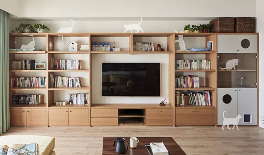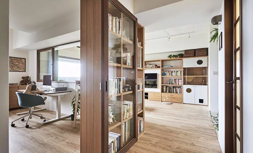 空间设计不一定只能为“人”定义同住一个屋檐下的宠物也要留心倾听它们的需求这是一个2人2猫同住的99㎡房屋设计的细微处不仅展现夫妻俩阅读和收藏公仔的喜好也为猫咪设计了不少有爱的配置每一个空间都自然流露出清新感从木地板延展开的日系幸福生活温暖又能捕捉到猫咪生活的一点一滴使用面积:99㎡格局:2室1厅居住