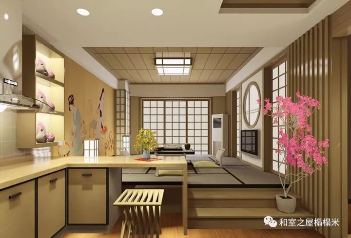 窗户边空间定制榻榻米升降桌,矮柜和边角的隔板,障子门的衬托。营造榻榻米茶室、卧室、休息室的创意空间。