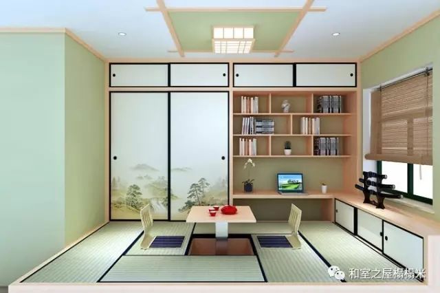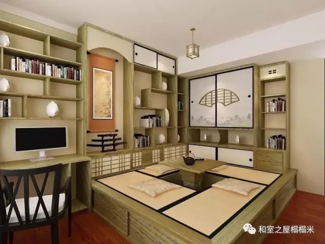 客厅榻榻米设计可以很优雅,很温馨,很小资,就像上图中所设计的那样。竹帘,曲木座椅,障子门,福斯玛衣柜搭配的相得益彰。在客厅的落地窗处,留出一隅空间,设计个榻榻米,安装个升降台,和朋友、家人、爱人相对而坐,泡一壶清茶,闲聊几句家常或者是阅读各自喜爱的书籍。