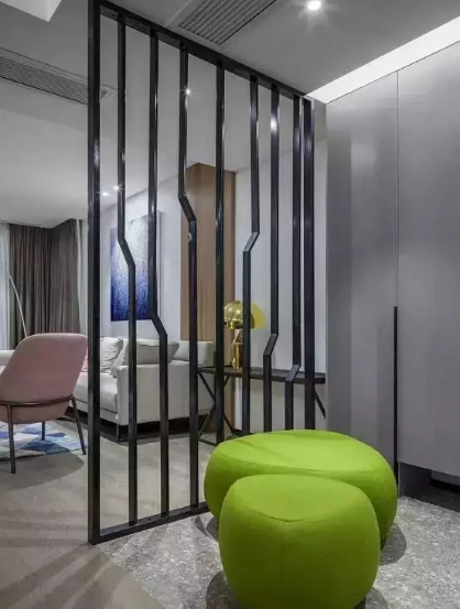隔断设计除了材质的选择,居室的整体风格也是应该考量的条件,中式、日式应突出质朴稳重,美式欧式等铁艺雕花最为适宜,现代、工业风比较适合简洁利落的设计。