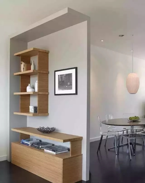 在奇葩户型中,我们经常看见比如客餐厅在一起或者一进门就是客厅的情况,因为空间的局促使得两个功能区无法完全独立。可是造一堵隔墙又严重影响居室的采光和通透性,这时的你,大概需要一个半开放式的隔断。