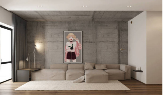 墙上的大幅油画为整个空间增添艺术氛围