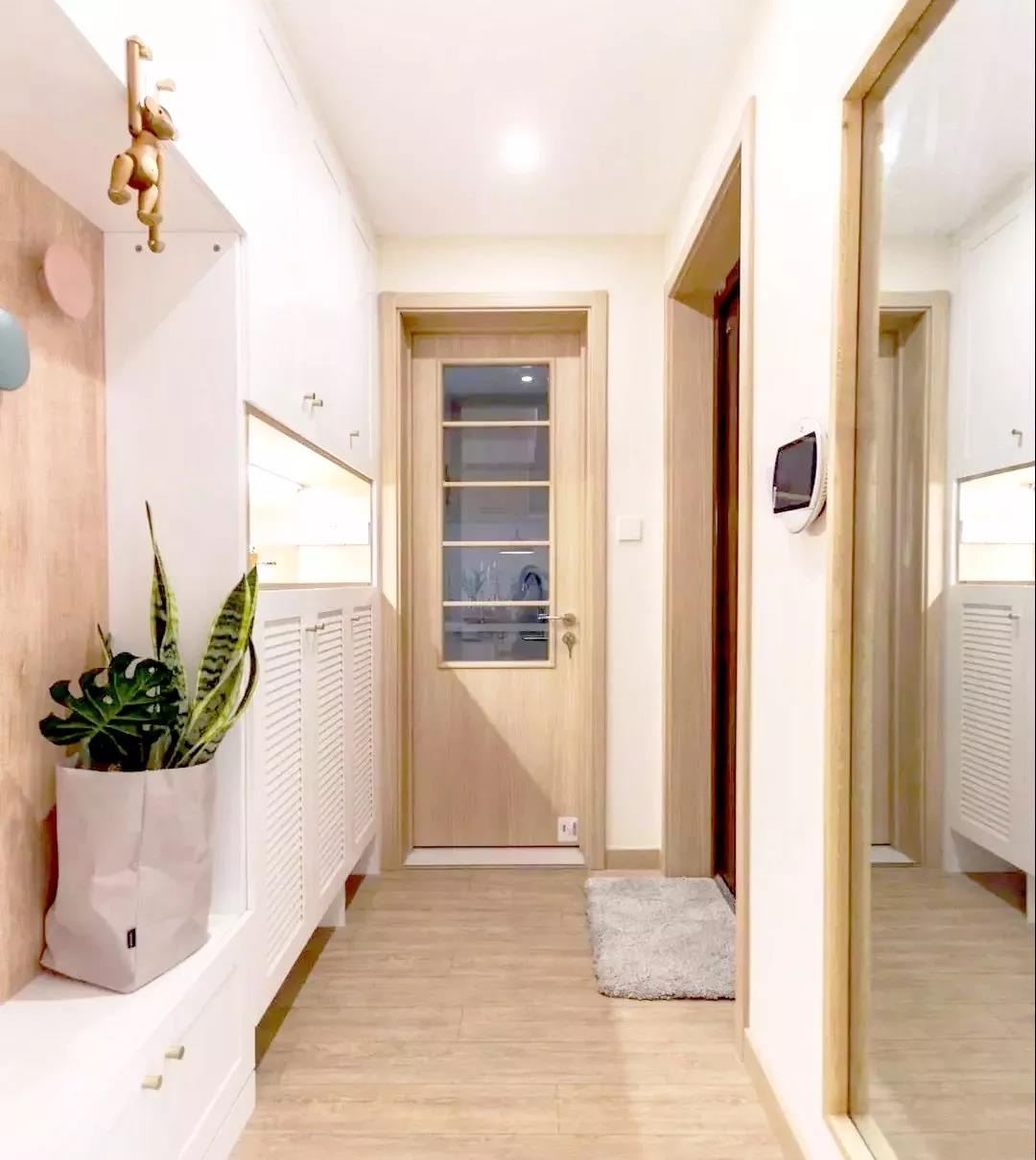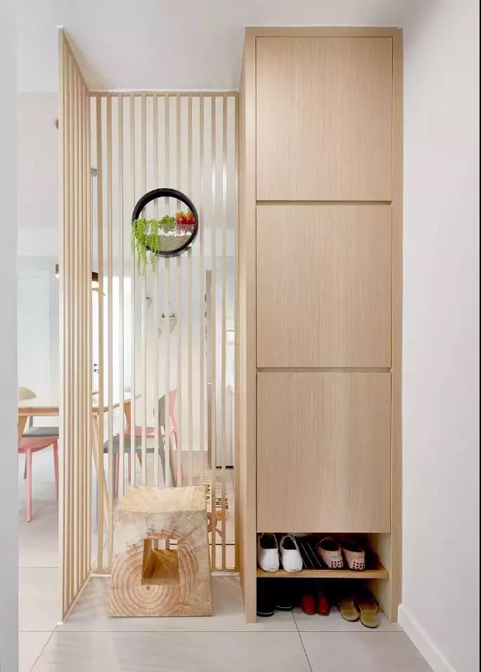那么家里没有玄关的户型,要怎么补救?这个要分两种情况,如果进门空间比较紧凑,那就想方法放个鞋柜,实现收纳功能,如果进门空间充足,就可以设置一个隔断,实现玄关区的独立。