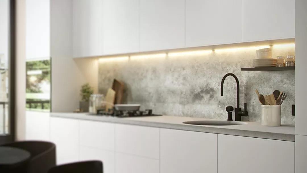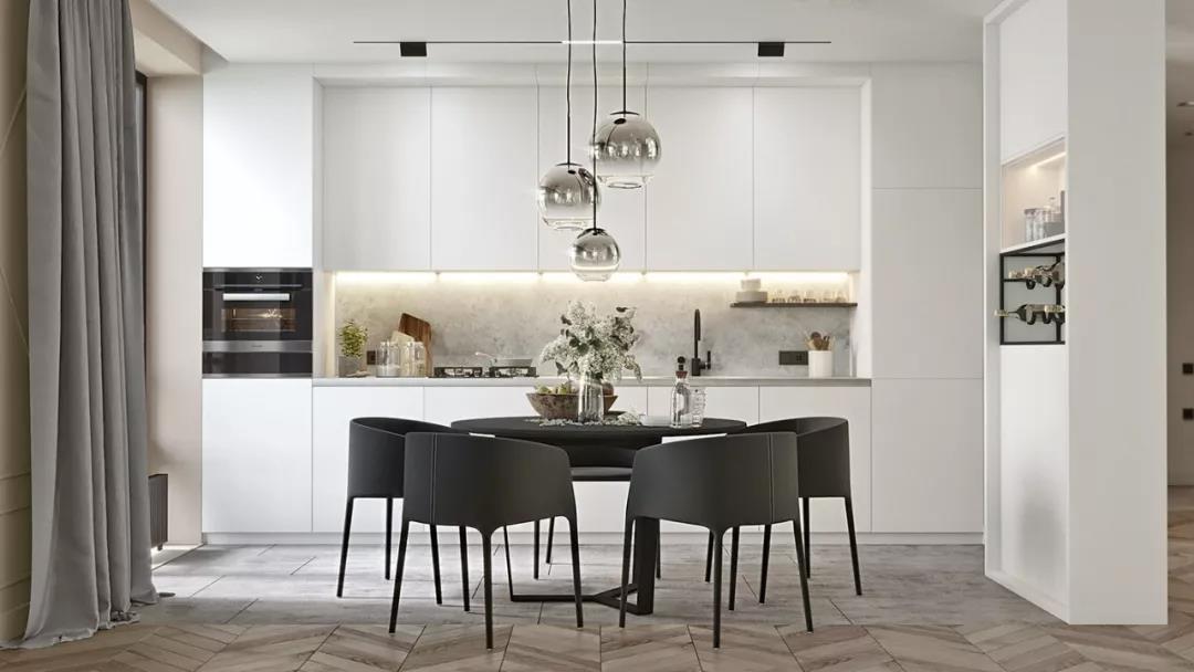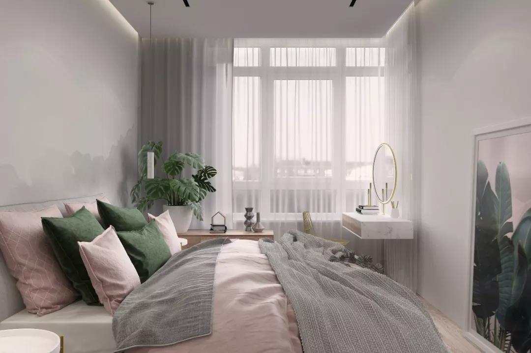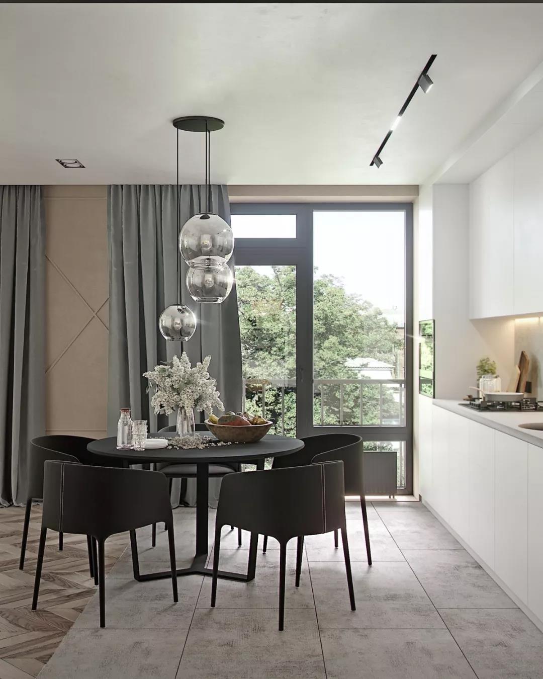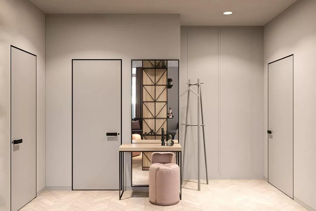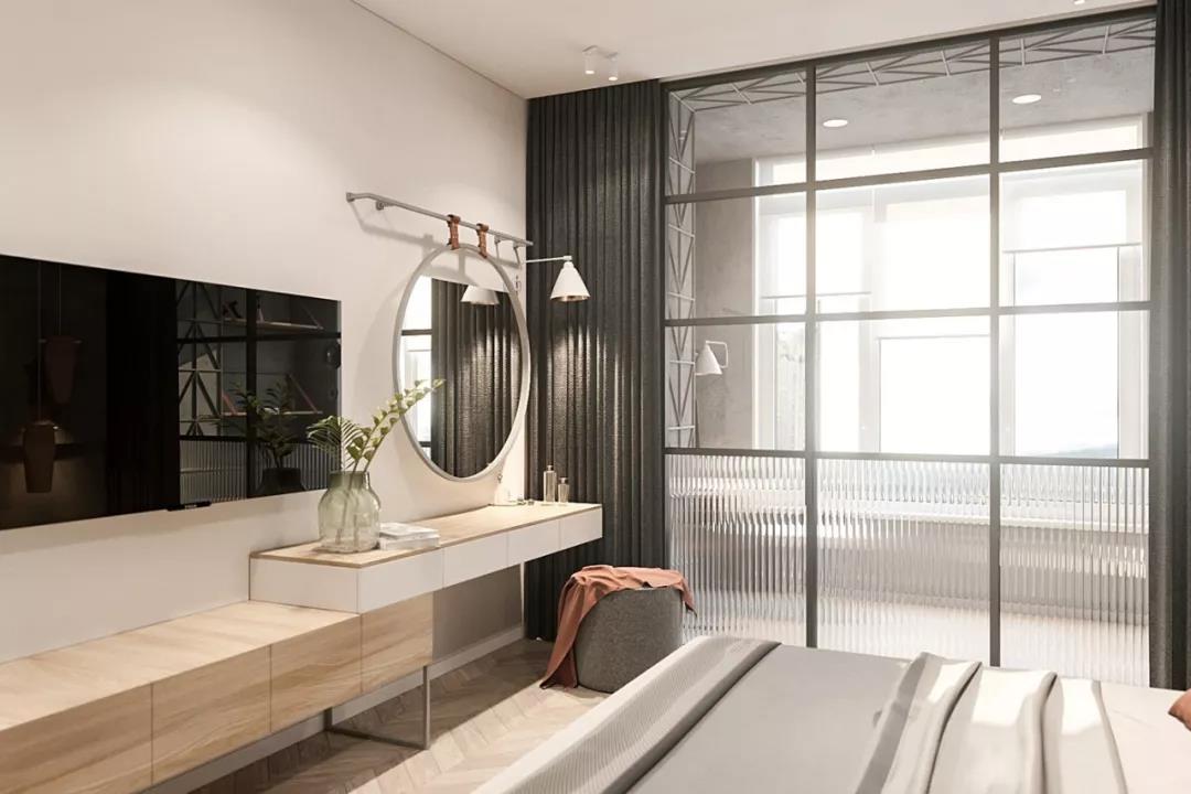 粉红色给人的既定印象是少女心,通常使用在女孩房中,但 Yumo Architects 设计团队的这起乌克兰公寓案例,则说明了如何以粉红色为空间形塑现代文艺感。客厅以大面积的藕粉色模块沙发为暖色系空间注入一丝亮点,奶茶色壁面搭配灰色窗帘,地面沿用同一色调的鱼骨纹木地板,和藕粉色沙发相呼应,显得清新优雅。