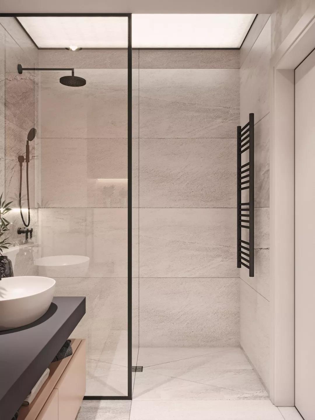 粉、灰色奠定了粉嫩优雅调性,以玻璃隔间与混拟土拓展个人书房,不仅邀日光入室,更活化原本呆滞空间。软件部分不仅精简且风格具体,皆採用曲度照明、圆润家饰品,结合温润皮革衬出高雅气息。