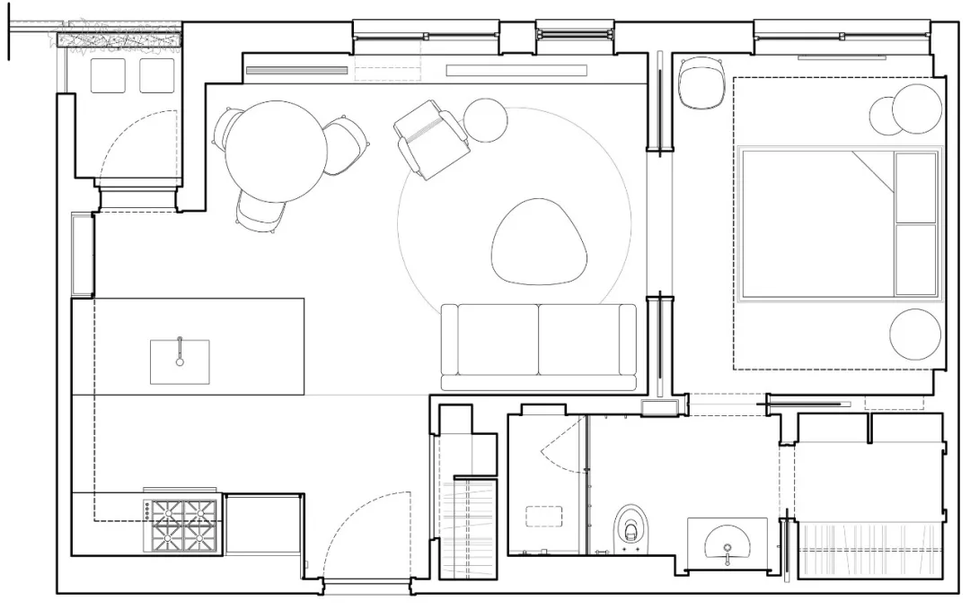 面积小,功能却要齐全,面对如此棘手的问题,青山周平只好从直和水平方向上的可变性、伸缩性来解决问题。