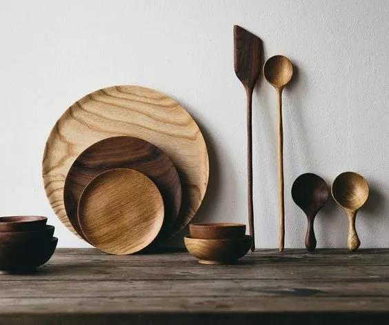 木制材料不仅环保而且透出温暖质朴的感觉,选择木制的厨房用具不仅可以给空间带来一些文艺气息也能让急躁的心自然而然的慢下来。