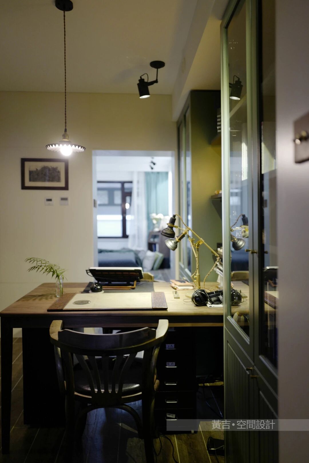 走廊尽头的书房布置沉静复古