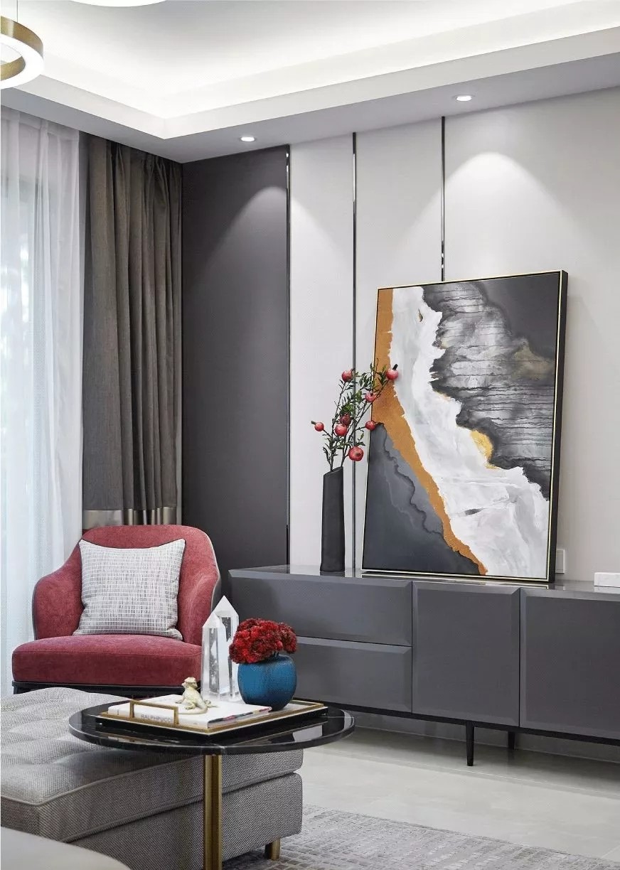 灰色,沉静而内敛,在介于黑白的灰色空间中,玛莎拉红是提亮色彩的应和之选。强烈的对比中不带有刺眼的冲突,彰显更高级的色彩魅力,在圆润简秀的视觉形态基础上,展现品质感、舒适感及简洁的生活空间。艺术与轻奢结合,华美而精致,高雅的格调氤氲而生。