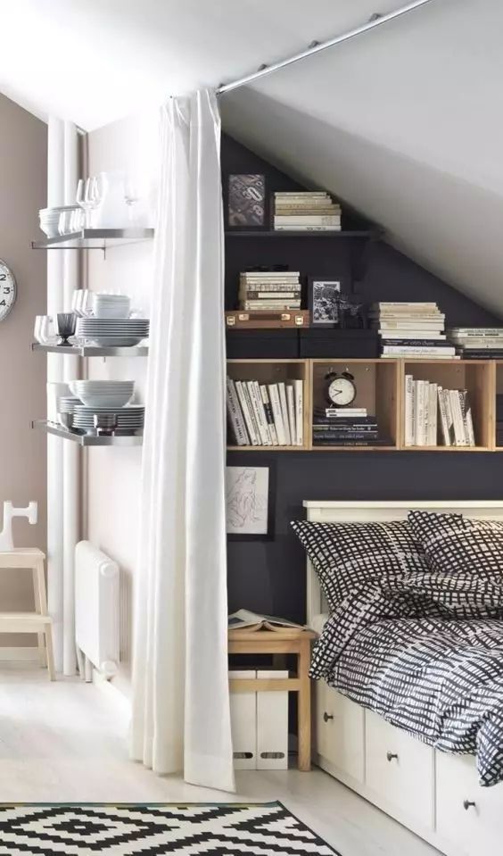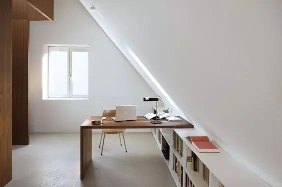 因为受到层高和形状的限制,阁楼收纳一般都在墙上寻找切入点,其中以嵌入式设计最为常见。