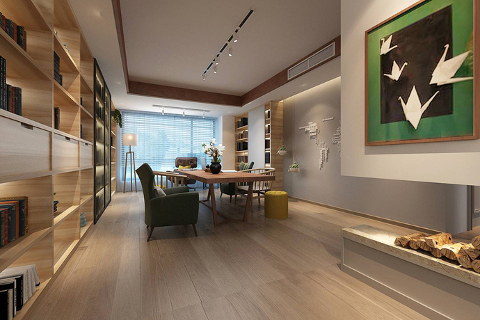 用了温润原木装饰,用自然暖色调的得高Quick-step经典地板把握整体色调,以其他浅调原木为装饰搭配整个空间。