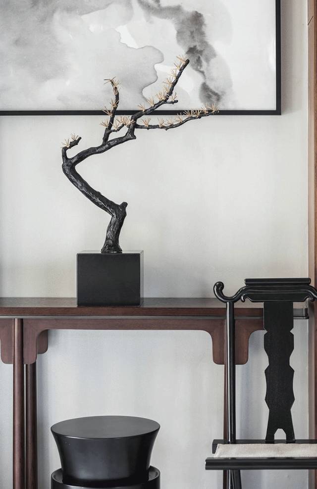空间对称的结构、材质的运用及软装陈列方式都体现出中式的韵味与仪式感,在东方美学被不断提起的今天,呈现出一种开放的姿态,并保持自我的风格