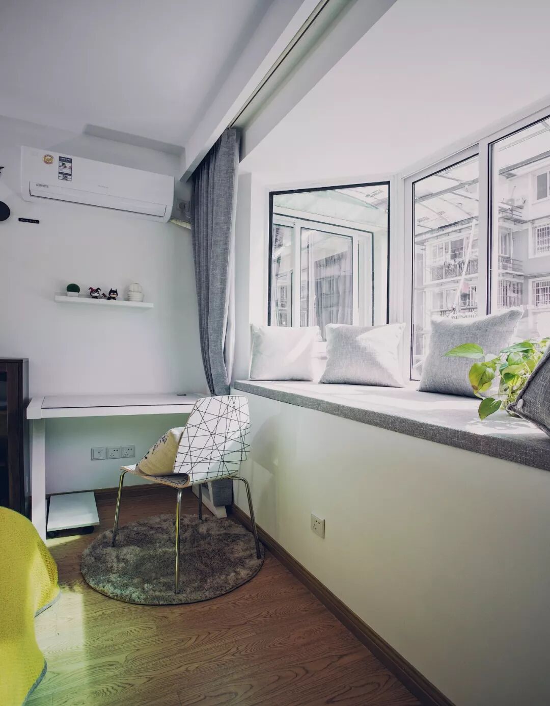 9、市面上的空调外观大部分都很简洁大方,其实直接把空调挂在白墙上,这样的简单直白也足够美观了。